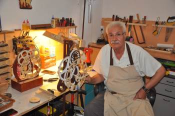 Harbi Başaran yaptığı açıklamada, kendisine gelen İsviçre modeli saatten aldığı ilhamla ahşap saat üretimine başladığını söyledi. 3 yıldır hobi olarak modern ahşap saat yapını sürdürdüğünü belirten Başaran; “Bundan 3 yıl önce İsviçre malı ahşaptan imal edilmiş eski bir saat getirildi bana tamir için. O saati söktüm, inceledim ve o saat bana ilham kaynağı oldu. Bugün ahşap saat yapımına başlamama neden oldu. İlk zamanlar duvara asılan ağırlıklı ve motorla çalışan saatler yapmaya başladım. Daha sonra dolapların içerisine konabilecek kapasiteye kadar saatleri geliştirdim. Dolap içerisi ve duvara asılabilen saatler yapmaya başladım” dedi.
