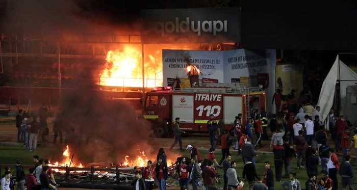 TARAFTAR TRİBÜNLERİ ATEŞE VERDİ