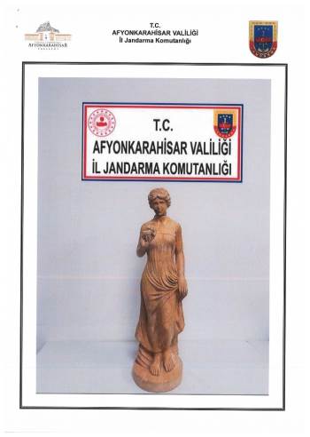 Afyonkarahisar İl Jandarma Komutanlığı ekipleri tarafından yapılan çalışmalar sonucu, kent merkezinde bulunan Kasımpaşa Mahallesi’nde ikamet eden M.S. isimli şüpheli şahsın elinde tarihi eser niteliği taşıyan objeler bulunduğu ve satmak istediği yönünde ihbar alındı. Fiziki takibe alınan M.S. ve birlikte hareket ettikleri tespit edilen M.G. ile K.A. isimli şahıslar yakalandı. Şüpheli şahıslara ait ev ve iş yerlerinde yapılan aramalarda 1 adet heykel, 1 adet heykele ait kafa kısmı olmak üzere toplamda 2 parça tarihi eser ele geçirildi. Şüpheli şahıslar hakkında yasal işlem başlatıldığı bildirildi.