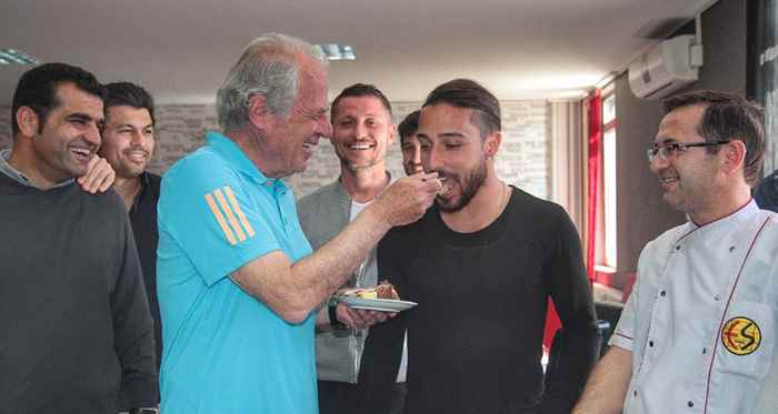 Deneyimli oyuncuya takım arkadaşları klasikleşen doğum günü sürprizi gerçekleştirdi ve renkli görüntüler ortaya çıktı.