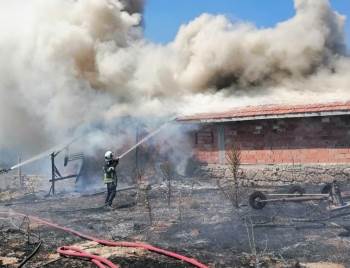 Tavşanlı’Da Ot Yangını Boş Besi Damına Sıçradı