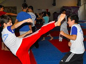 Spor İl Müdürlüğü’nün okullarında kapanmasıyla birlikte açtığı tekvando yaz okulunda antrenmanlar aralıksız devam ediyor. Bu spora gönül veren çok sayıda öğrenci, tecrübeli antrenör İsa Şahin’den eğitim alıyor. Okullar açılana kadar antrenmanlara devam edeceklerini belirten Şahin, “Yaklaşık 1 buçuk aydır sürekli çalışıyoruz. Öncelikli hedefimiz spor yapmayı seven bireyleri topluma kazandırmak. Grupta yetenekli isimler var. Daha çok çalışıp daha çok sporcuya ulaşmak istiyoruz” diye konuştu. (Spor Servisi)