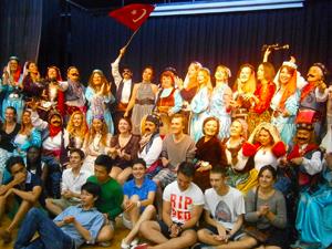 Tepebaşı Belediyesi Anneler Halk Oyunları ve Tiyatro Topluluğu üyeleri, dünyanın birçok yerinden gelen gençlere, kına, düğün ve geleneklerimizi anlatan küçük bir oyun sahnelediler.