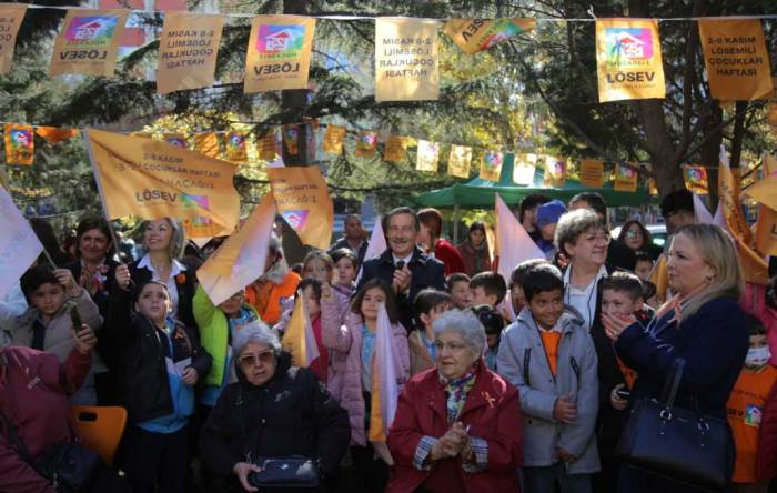 2-8 Kasım Lösemili Çocuklar Haftası anlamlı bir açılışla taçlandı. Tepebaşı Belediyesi LÖSEV Parkı düzenlenen renkli törenle açıldı. Törene Büyükşehir Başkan Vekili Hasan Ünal, Tepebaşı Belediye Başkanı Ahmet Ataç, LÖSEV İl Koordinatörü Yelda İlker, LÖSEV gönüllüleri, aileler ve çocuklar katıldı. Törende konuşan Başkan Ataç, hekim kimliği ile geldiğini belirterek, “Çok önemli bir hastalık olan kanserin ikinci sırada yer aldığını ama yavaş yavaş 1’inci sıraya doğru hareket ettiğini bütün dünya biliyor. O açıdan bu hastalığın erken teşhisi herkesin bildiği gibi çok önemli ve bu çalışmalarını sürdürülmesi de önemli. Sevgili doktorÜstün meslektaşım, devletin yapamadığı bazı şeyleri yaptı. Sivil toplum örgütleri böyle bir şey. Geçenlerde Almanya'daydım. Almanya'da bütün engelli projelerini sivil toplum yapıyor. Devlet sadece destek veriyor. LÖSEV de böyle önemlibir işi yapıyor. Çünkü daha önceki yıllarda Osmangazi Üniversitesi'nde klinikte beraber olduk, çok destek vermeye ve yanlarında bulunmaya çalıştık. Ama yine de ne yaparsak yapalım çok tatmin olmuyorum ben. Çünkü bu farklı bir konu… Herkesin yürekten sarılması gereken bir konu” ifadelerini kullandı.