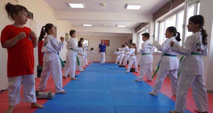 Merkezde düzenlenen tekvando kursu da çocukların ilgisi ile sürüyor. Gruplar halinde devam eden eğitimler kapsamında, 123 çocuk antrenmanlara katılıyor. Eğitimlere katılan çocuklar, eğitmenler gözetiminde sağlık ile spor yaparken kendilerini savunmayı da öğrenmiş oluyor. Ayrıca aldıkları eğitimler sonucunda yıl sonunda düzenlenen kuşak sınavında hünerlerini sergiliyor.