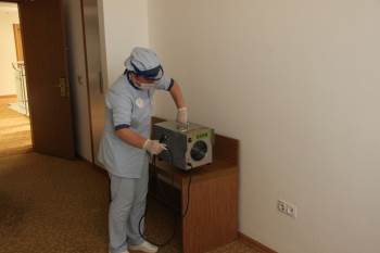 “Odaları önce doğal ortamda pencereleri açarak havalandırıyoruz. Antiseptik dezenfektanlarla odalarımızı dezenfeksiyonunu sağladıktan sonra ozon makinalarımız ile içerideki havayı temizleyecek şekilde dezenfeksiyonu tamamlıyoruz.