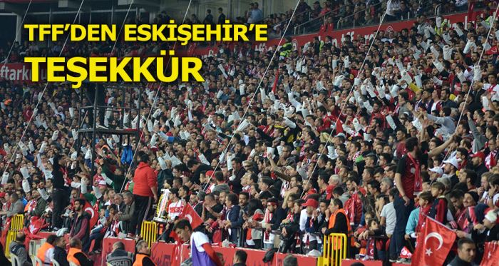 "A Milli Takımımızın 2018 FIFA Dünya Kupası Avrupa Elemeleri'nde oynadığı ve 3-0 kaybettiği İzlanda maçında Yeni Eskişehir Atatürk Stadı'nı dolduran ve yenilgiye rağmen karşılaşmanın başından sonuna kadar Ay-Yıldızlılara destek olan 35 bin futbolsevere teşekkür ederiz. Önceki maçlarda olduğu gibi yine mükemmel bir ev sahipliği yapan Eskişehir şehri ve halkı; her sonuçta A Milli Takımımızın yanında yer alarak milli takım taraftarlığının en güzel ve en coşkulu örneklerinden birisini sergileyip takdir edilecek bir tabloya imzasını attı. Bu nedenle Eskişehir halkına şükranlarımızı sunar, başta Eskişehir Valiliği, Eskişehir Büyükşehir Belediyesi, Eskişehir Emniyet Müdürlüğü ve tüm resmi makamlara, Eskişehirspor Kulübü, ilgili spor kurum ve kuruluşları ile taraftar derneklerine destekleri ve misafirperverlikleri için teşekkür ederiz."