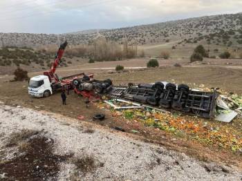 Konya-Emirdağ Karayolu Üzerinde Dün Gece Saatlerinde Ömer K.’Nın (48) Himayesindeki Tırın Yoldan Çıkıp Takla Atması Sonucunda Meydana Gelen Kazada Yan Koltukta Oturan Oğul Uğur K. (26) Hayatını Kaybetti
