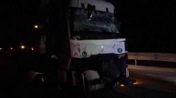 Olayın ardından konuşan kamyon şoförü Emrah T., ise tırın bir anda aracına arkadan çarptığını kaydederek, “Çok suratlıydı yada uyumuştu herhalde şoför arkadaş. Bir vurdu, ikincisinde de vurunca TIR’ı yavaşlatan ben oldum. Bizim aracımız şarampole yan yattı. Gelmiş geçmiş olsun. Bende bir şey yok. Arkadaş hastaneye kaldırıldı” dedi.