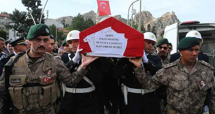 Suriye'de güvenlik faaliyetleri kapsamındaki bir üs bölgesine silahlı saldırıda şehit olan Samsun Özel Harekat Şube Müdürlüğü personeli Çalışgan'ın naaşı, Gaziantep'ten askeri uçakla Tokat Havalimanı'na getirildi.