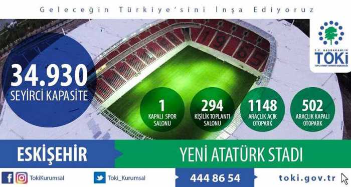 Eskişehirspor’a kazandırılacak olan yeni stadyumun ismi açılandı. TOKİ’nin twitter adresinden stadyum isminin “Yeni Atatürk Stadı” olarak belirlendiği açılandı.
