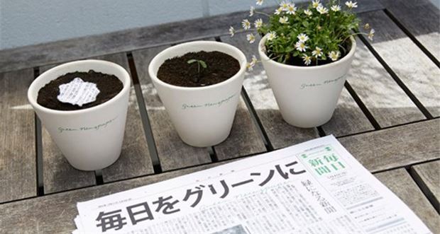 Japonya’nın bitkiye dönüşen gazetesi The Mainichi Shimbunsha, okunduktan sonra toprağa gömülünce, içine yerleştirilen tohumlar sayesinde ağaç, çiçek ya da sebze elde edilebiliyor.