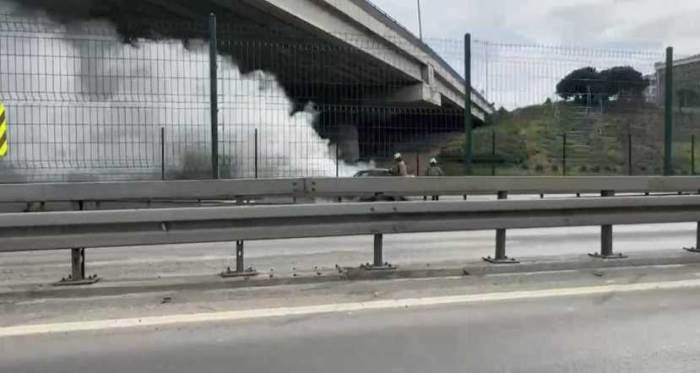 Üsküdar'da D-100 karayolunda seyir halindeyken motor kısmından alevler yükselmeye başlayan BMW marka otomobil, itfaiye ekiplerinin müdahalesiyle söndürüldü.