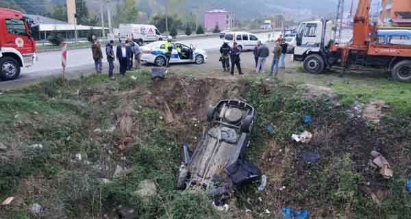 Samsun'da cep telefonu ile konuştuğu için ceza yazılan araç sürücüsü bir süre sonra aracıyla menfeze uçtu. Kazada, anne ve babaanne hayatını kaybederken, sürücüyle birlikte baba yaralandı.