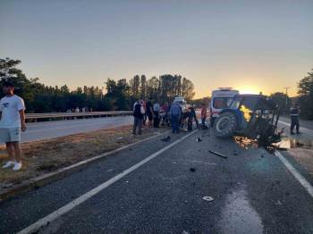 Afyonkarahisar’Da Hafif Ticari Araçlar Traktörün Çarpıştığı Kazada 3 Kişi Yaralanırken, Olayda Traktörün Ortadan İkiye Bölünmesi İse Yaşanan Kazanın Şiddetini Gözle Önüne Serdi.