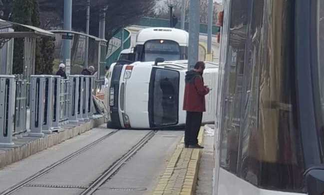 Aynı gün içerisinde Çamlıca Mahallesi'nde tramvay yolunda seyir halinde olan bir minibüs de devrildi. Kazada minibüste ve durakta maddi hasar oluştu. Devrilen minibüs tramvay yolunu kapatarak seferlerde aksamaya neden oldu.