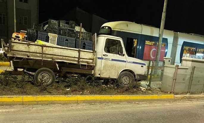 Gece saatlerinde ise 75. Yıl Mahallesi'nde sürücüsünün direksiyon hakimiyetini kaybettiği kamyonet, tramvay durağına çarptı. Kazada kamyonette ve durakta maddi hasar oluştu.