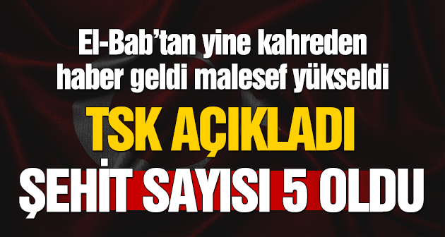 Akşam saatlerinde yaralı askerlerin 2'sinin daha kurtarılamadığı ve şehit sayısının 4'e yükseldiği açıklanmıştı. Yapılan yeni açıklamada ise yaralı askerlerden birin daha şehit düştüğü ve son El Bab operasyonunda şehit sayısının 5'e yükseldiği kaydedildi. Suriye'de 169 gündür devam eden harekattaki şehit sayısı ise 61'e yükseldi.