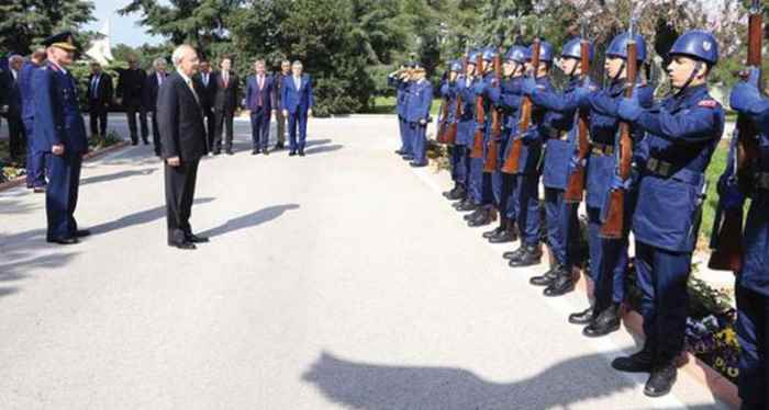 Tören mangası CHP Lideri’ni selamlayarak karşıladıktan sonra Kılıçdaroğlu, yanındakilerle birlikte Üs Komutanı Hava Pilot Tuğgeneral Ahmet Biçer’e nezaket ziyaretinde bulundu. Karşılama ve ziyaret fotoğrafları, Bandırma Belediye Başkanı Dursun Mirza’nın Facebook sayfasında paylaşıldı.