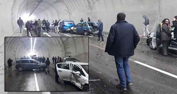 Videoyu Aç Tünelde zicirleme kaza! 6 araç birbirine girdi...