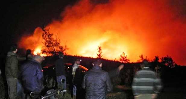 Marmaris'teki Bördübet Mevkii'ndeki orman ve makilik alanda başlayan, giderek geniş bir alana yayılan yangına müdahale bölgenin sarp kayalık olması nedeniyle güçlükle yapıldı. Havanın kararmasıyla çalışmalar daha da zorlaştı.