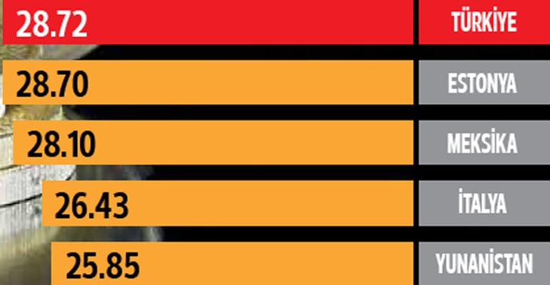 TÜRKİYE, ekonomisindeki kayıtdışı oranıyla 34 OECD ülkesini geride bırakmayı başardı. Türkiye ekonomisinin yüzde 28.72’si kayıt dışı. İkincilik yüzde 28.70 ile Estonya ve yüzde 2810 ile Meksika’da. ABD yüzde 7.95, İsviçre ise yüzde 8.07’lik kayıt dışı ekonomi oranıyla son sıralarda yer alıyor. Boğaziçi Üniversitesi Ekonomi Bölümü Öğretim Üyesi Doç. Dr. Ceyhun Elgin’in araştırmasına göre Türkiye’de son 10 yılda kayıt dışı ekonomide hiçbir başarı sağlanamadı.