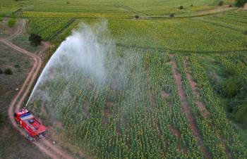 Yapılan desteklemelerle Bilecik’te ayçiçeği üretiminde çok ciddi bir artış olduğunun altını çizen Vali Kızılkaya, geçen yıl 60 bin dekar olan ayçiçeği ekili alan büyüklüğünün sağlanan teşvikler ve çiftçilerin gayretiyle bu yıl 90 bin dekara çıktığını vurgulayarak; “Çayır tırtılı zararlısı ilimizde merkez, Gölpazarı ve Osmaneli ilçelerimizde etkili oldu. 90 bin dekar ayçiçeği ekili alandan 9 bin dekarında bu zararlının enfekte olduğunu öğrendik. Bununla ilgili olarak da Tarım ve Orman İl Müdürlüğümüz çok ciddi bir çalışmayı hemen başlattı. Oluşturduğumuz 24 ekiple birlikte bütün alan tarandı. Şu anda elhamdülillah tespit edilen 9 bin dekarın ötesinde bir yayılma söz konusu değil. Tespit edilen 9 bin dekar alanda da hızlı bir şekilde mücadele başladı" dedi.