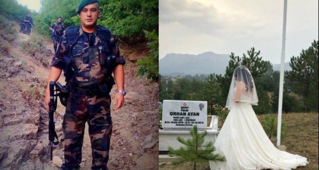 15 Ekim 2012'de PKK'lı teröristlerin bombalı tuzağında şehit düşen Orhan Ayan'ın kızı Büşra'nın gelinliğiyle babasının mezarı başında çektirdiği fotoğraf herkesi derinden etkiledi.