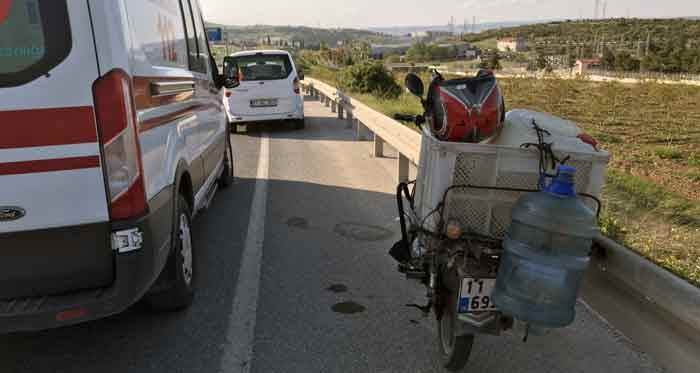 Mustafa Demir (56) idaresindeki 11 AY 692 plakalı motosiklet, Bilecik-Osmaneli kara yolu Tepebaşı mevkisinde bir otomobile çarptı.