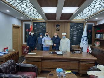 İlçe Müftüsü Muammer Ölmez tarafından kendisine ihtida beraatı ve Rusça mealli Kur’an-ı Kerim hediye edildi.