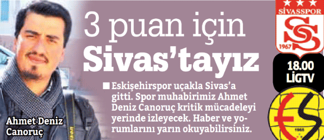 Sivas karşısında taraftarlar şimdiden puan hesapları yapmaya başladı. Alınacak 3 puan Eskişehirspor’un biraz olsun nefes almasını sağlayacak. Sivas’ta yenilmemek ise milli aranın ardından oynanacak olan Kayseri Erciyes maçını çok daha önemli hale getirecek. 4 Eylül Stadyumu’nda saat 18.00’de oynanacak olan karşılaşmada Serkan Çınar düdük çalacak.