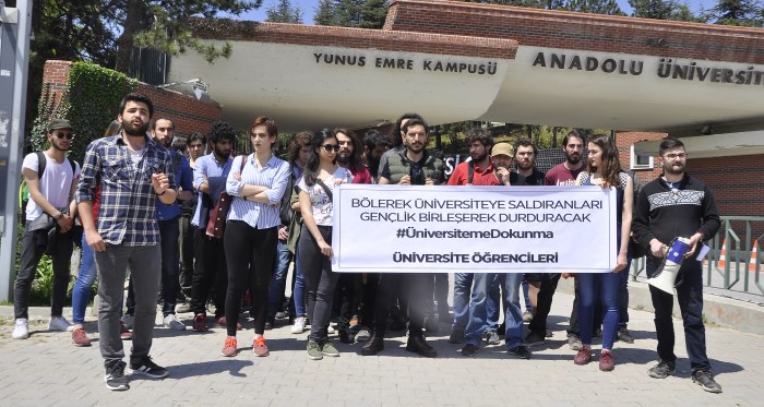 Geçtiğimiz gün yapılan açıklamayla Anadolu Üniversitesi’nin ikiye bölüneceği ve bazı fakültelerin Eskişehir Teknik Üniversitesi adı kurulacak yeni üniversiteye aktarılacağı duyurulmuştu. Söz konusu karara tepki gösteren üniversite öğrencileri Anadolu Üniversitesi Yunus Emre Kampüsü önünde toplanarak açıklama yaptı. Sık ‘Üniversite bir bütündür bölünemez’ sloganları atan öğrenciler adına açıklama yapan Doğan Can Aras, “Bu kadar köklü bir üniversiteyi bölerek niteliksiz bir üniversite kurmak istiyorlar. Bu tasarı Meclis’ten geçer, kampüsten geçmez. Üniversiteyi bölüp parçalayıp ele geçirmeyi planlıyorlar. Üniversite öğrencileri olarak bu talana, bölmeye ve parçalamaya karşı üniversitelerimize sahip çıkıyor, tüm gençleri de üniversitelerimizin geleceği için sürdüreceğimiz bu mücadelede beraber olmaya çağırıyoruz” dedi.
