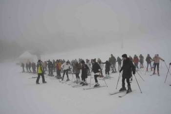 Üniversite Öğrencileri Murat Dağı Termal Kayak Merkezi’Nde Harmandalı Zeybeği Oynadı