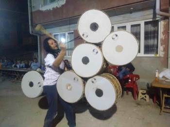 Düzenlenen nişan, kına gecesi ve düğünlerin aranılan adamı Erkan Karagöz, Hisarcık’ta katıldığı sünnet düğününde boynuna astığı 6 davulu birden çalarak izleyenleri şaşkına çevirdi.