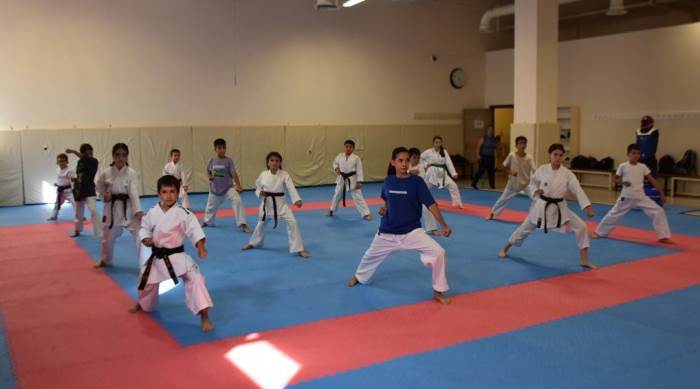 Gençlik Hizmetleri ve Spor İl Müdürlüğü tarafından açılan karatede yaz okullarında elit sporcular eğitim gören yeni sporculara deneyimlerini aktarıyor.