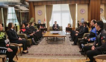 Kütahya İl Emniyet Müdürü Necmettin Koç ile polisler, Vali Ali Çelik’i makamında ziyaret etti.