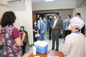 Kütahya Valisi Ali Çelik, Kovid-19 aşı polikliniğini ziyaret etti. Aşı çalışmaları hakkında bilgiler alan Vali Çelik, aşı olmak için polikliniğe gelen vatandaşlarla da görüşüp duyarlılıklarından dolayı teşekkür etti.