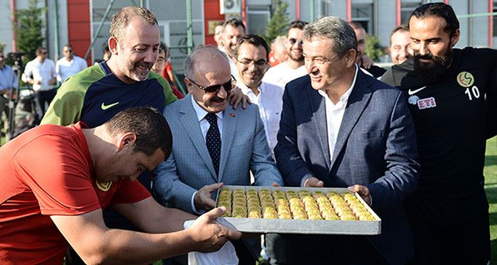 Konuşmaların ardından Vali Çakacak, teknik direktör Sergen Yalçın ve futbolculara baklava ikram etti.