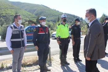 Vali Şentürk, Osmaneli Kaymakamı Yüksel Ünal, Belediye Başkanı Münür Şahin, İl Emniyet Müdürü Ertuğrul Namal, İl Jandarma Komutanı Muzaffer Sandal, İlçe Emniyet Müdürü Dr. Ali Özgan, İlçe Jandarma Komutanı Teğmen Eyüp Uzun birlikte Sakarya- Bilecik Karayolu içmeler mevkiinde bulunan uygulama noktalarında gerçekleştirilen denetimleri yerinde inceledi. Ekiplerin bayramlarını kutlayan Şentürk, Bilecik genelinde İçişleri Bakanlığı talimatları doğrultusunda tam kapanma sürecinde korona virüs (Covid-19) salgınıyla mücadelede tüm önlemlerin titiz bir şekilde uygulandığını belirtti. Korona virüs salgınından dolayı Ramazan Bayramı’nda ülke genelinde tam kapanma uygulandığını hatırlatan Şentürk, şunları kaydetti: