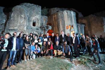 Afyonkarahisar’ın Ayazini köyünde bulunan Frig Vadisinde çekimleri devam eden bir tarih filmi seti gece geç saatlere kadar devam ediyor. Vali Doç. Dr. Kübra Güran Yiğitbaşı, Ayazini’nde çekimleri devam eden filminin setini ziyaret etti. Teknik ekip ve oyuncularla sohbet eden Vali Yiğitbaşı, tüm ekibe kolaylıklar diledi.