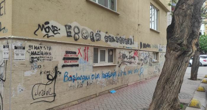Eskişehir'in Yenibağlar ve Eskibağlar Mahalleleri'nde bulunan bazı apartmanların duvarları, çirkin ve yasa dışı yazılar ve resimlerle kaplandı. Bu durum, apartman sakinlerini ve ev sahiplerini oldukça rahatsız ediyor.