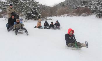 Vatandaşların Leğen, Poşet Veya Kızakla Kayak Keyfi