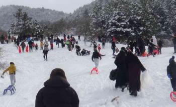 Çamlıca bölgesinde hem yetişkinler, hem de çocuklar uzunluğu 150 metreyi bulan rampadan kaydı. Bazı vatandaşların da plastik leğenlerle kayması renkli görüntüler oluşturdu. Vatandaşlar, "Çok güzel bir ortam. Aile dostlarımızla günü değerlendirmek için buradayız. Biraz serin, ama çocuklar açısından çok güzel oluyor" dediler.