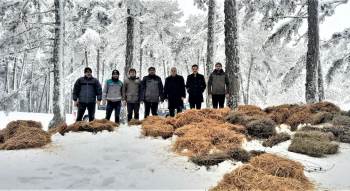 Kütahya Orman Bölge Müdürlüğü, kış şartlarında aç kalma tehlikesi ile karşı kaşıya kalan yaban hayvanlarının beslenmesi için doğaya yem bırakıyor.