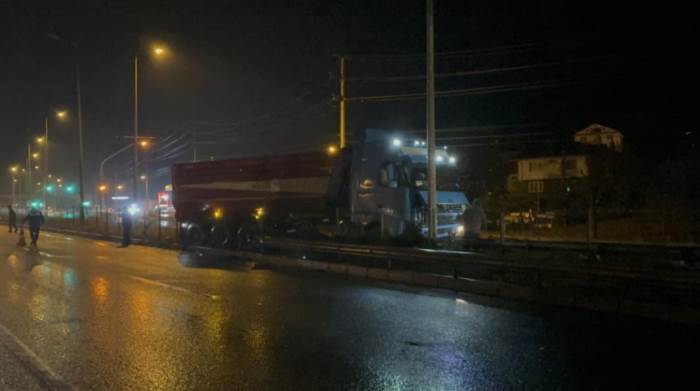 Olay, Çaydurt mevkiinde yaşandı. Edinilen bilgilere göre, yağışlı havanın etkisiyle kayganlaşan yolda direksiyon hâkimiyetini kaybeden Volvo marka tır, bariyerleri aşarak orta refüje düştü. Sürücü, kaza anında yara almadan kurtulurken, bölgeye sağlık ve jandarma ekipleri sevk edildi. Tır sürücüsüne ambulansta ayakta tedavi uygulandı. Jandarma ekipleri, kazanın ardından trafik akışını tek şeritten kontrollü bir şekilde sağladı. Kazayla ilgili soruşturma başlatıldı.