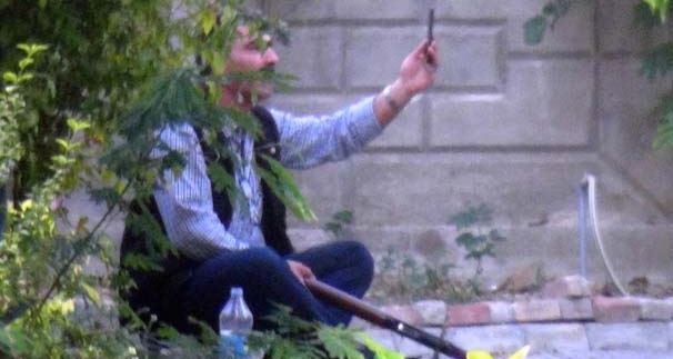 Elindeki tüfekle bir ağacın dibine oturan Nurettin Kırık, namluyu karnına dayadıktan sonra tetik bölümüne düzenek yapıp, ayağını dayadı. Polisin yanına yaklaşmasını istemeyen Kırık, o sırada cep telefonuyla da selfie çekti.