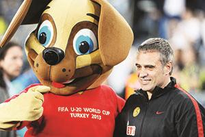 Eskişehirspor Teknik Direktörü Ersun Yanal, Fenerbahçe ile oynanan Ziraat Türkiye Kupası rövanş karşılaşmasında pek de alışık olunmayan bir görüntü verdi. Bu yıl Türkiye’de düzenlenecek FIFA U-20 Dünya Kupası maskotu Kanki ile objektiflere poz veren Ersun Yanal, bu renkli görüntüsüyle gerek tribünleri gerekse basın mensuplarını şaşırttı. (SS)