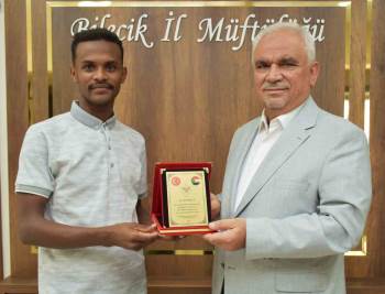 Bilecik İl Müftüsü Ali Erhun’a yaptığı yardımlardan dolayı Sudan Öğrenci Topluluğu tarafından teşekkür plaketi takdim edildi.