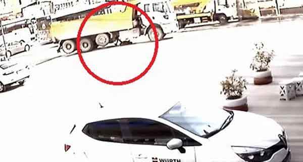 Yaşlı adamın kamyonun altında kaldığı o anlar kamerada