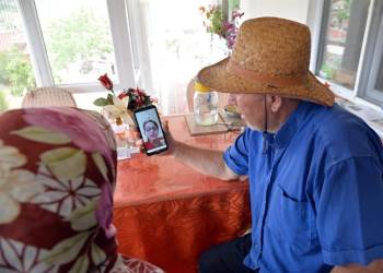 Bilecik’te 70 yaşındaki İsmail ile 68 yaşındaki Emine Durmaz çiftti evlerinin bahçesinde çalışırken bir sürprizle karşılaştı. Yaşlı çift torunları ile görüntülü görüşürken, “Hayatımızın en hüzünlü bayramımızı geçiriyoruz” dedi.